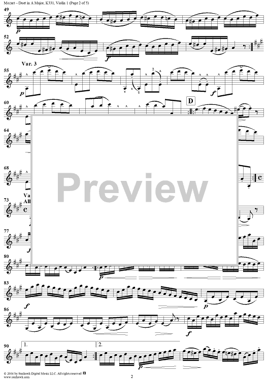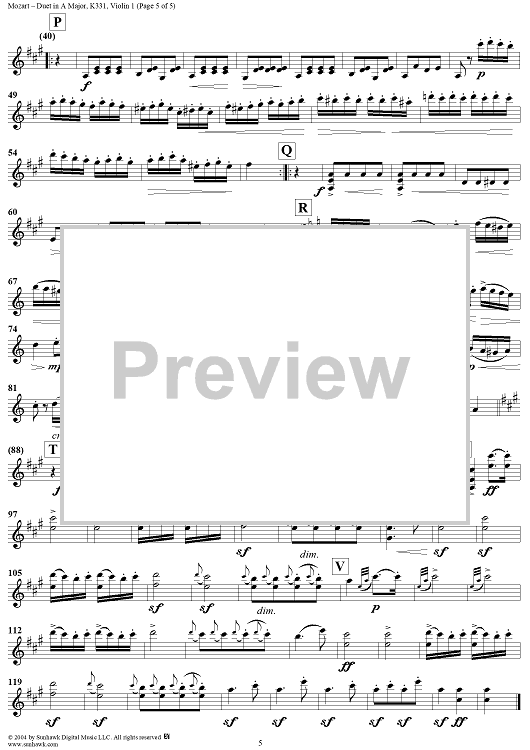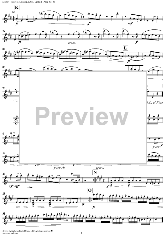 "Duet in A Major, K331 - Violin 1" Sheet Music by Wolfgang Amadeus Mozart