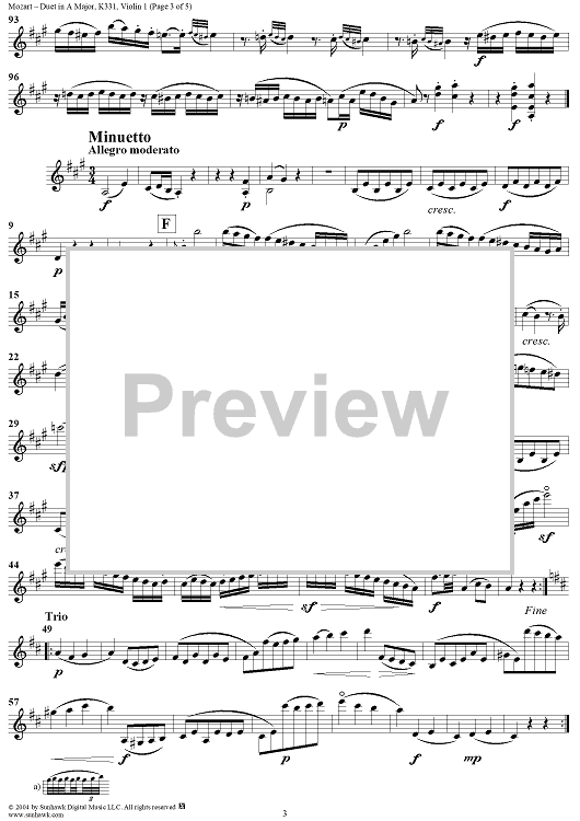 Digital Sheet Music for Duet in A Major, K331 - Violin 1 by Wolfgang Amadeus Mozart scored for Two Violins; id:294653