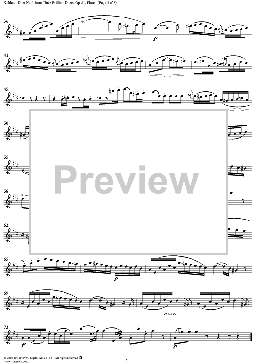 Digital Sheet Music for Duet No. 1 - Flute 1 by Friedrich Kuhlau scored for Two Flutes; id:285214