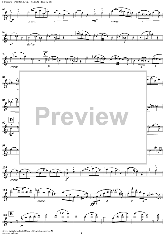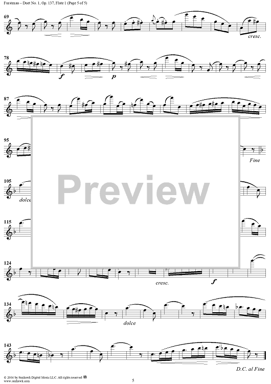 Digital Sheet Music for Duet No. 1 from Six Easy Duets, Op. 137 - Flute 1 by Anton Bernhard Fürstenau scored for Two Flutes; id:303310