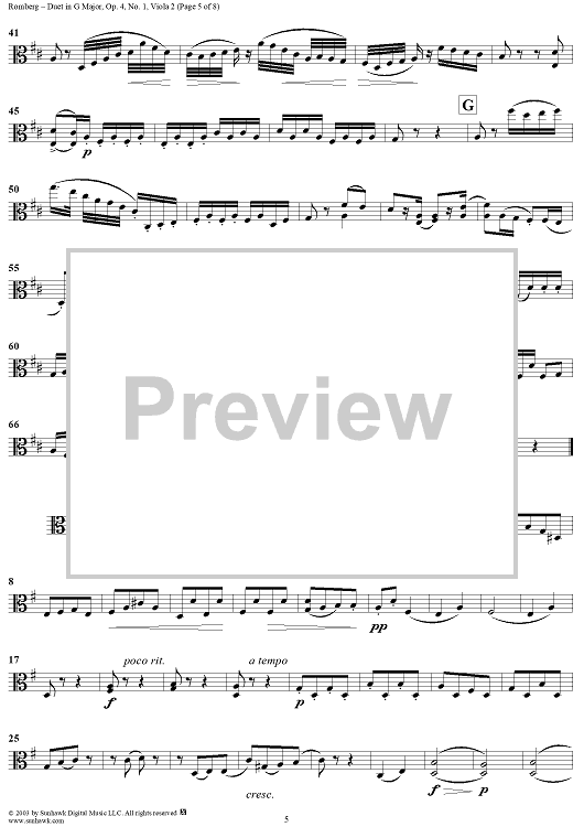 Digital Sheet Music for Duet No. 1 in G Major - Viola 2 by Andreas Romberg scored for Two Violas; id:295150