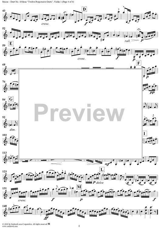 "Duet No. 10 - Violin 1" Sheet Music by Jacques-Féréol Mazas