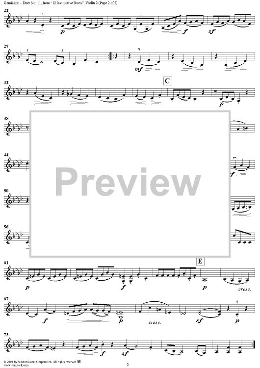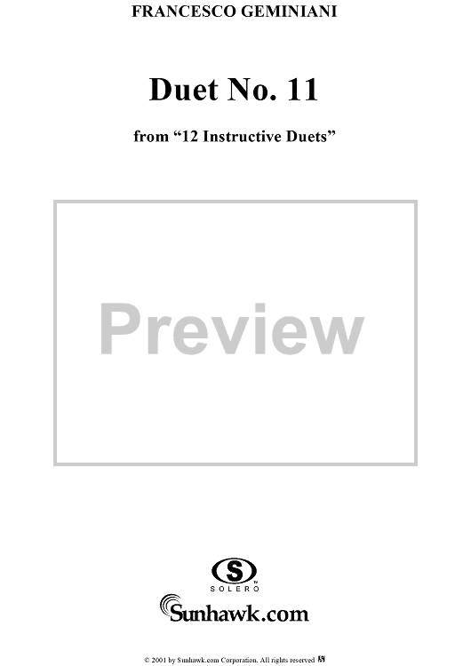 "Duet No. 11, from "12 Instructive Duets" - Violin 2" Sheet Music by Francesco Geminiani