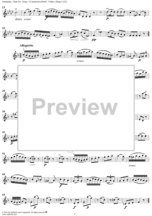 "Duet No. 2, from "12 Instructive Duets" - Violin 1" Sheet Music by Francesco Geminiani