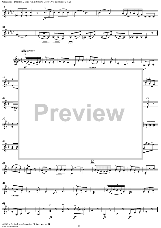"Duet No. 2, from "12 Instructive Duets" - Violin 2" Sheet Music by Francesco Geminiani