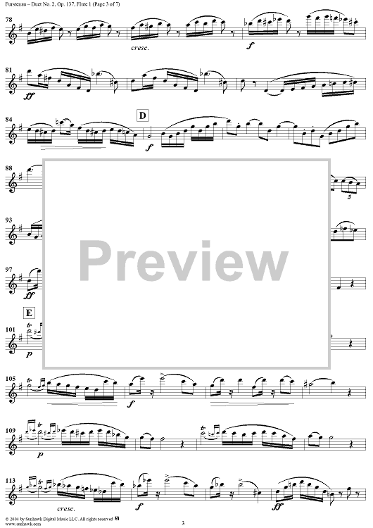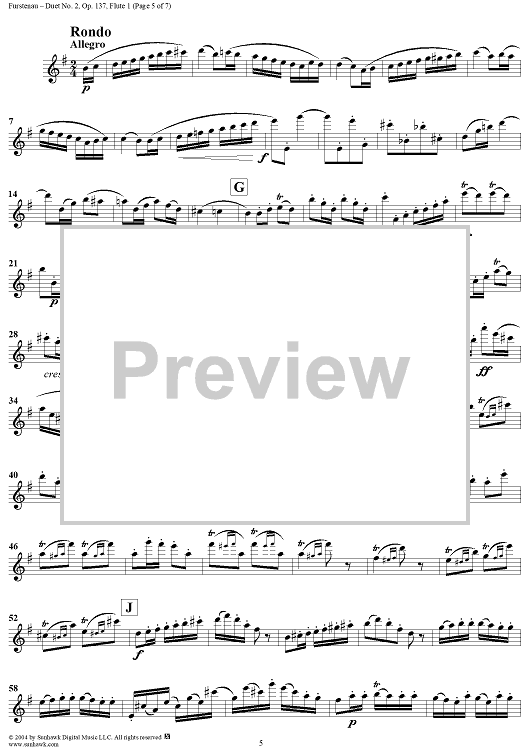 Digital Sheet Music for Duet No. 2 from Six Easy Duets, Op. 137 - Flute 1 by Anton Bernhard Fürstenau scored for Two Flutes; id:303312