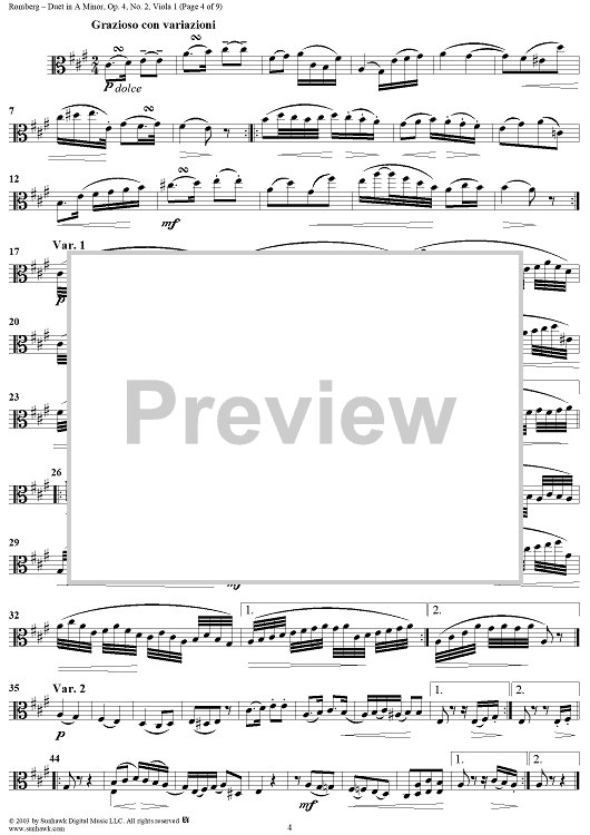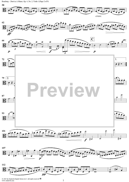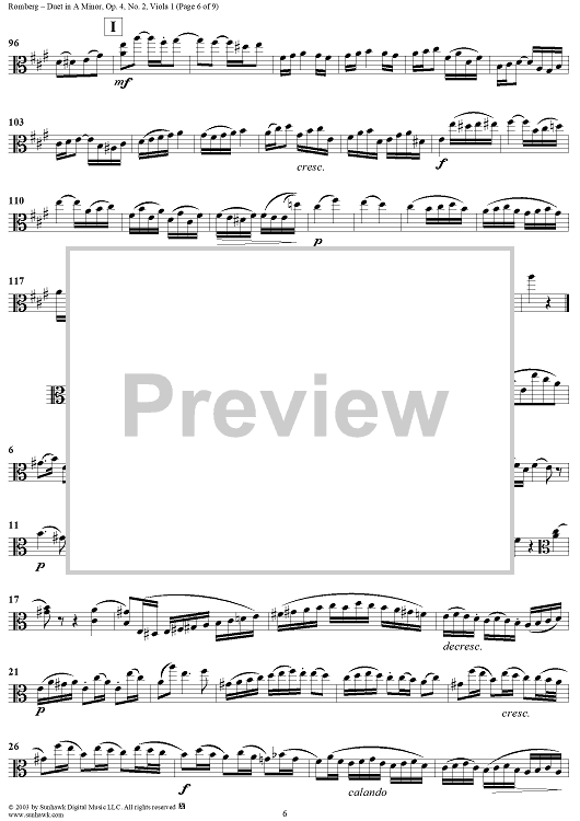 Digital Sheet Music for Duet No. 2 in A Minor - Viola 1 by Andreas Romberg scored for Two Violas; id:295148