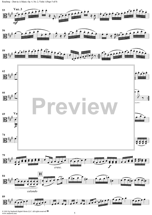 "Duet No. 2 in A Minor - Viola 1" Sheet Music by Andreas Romberg