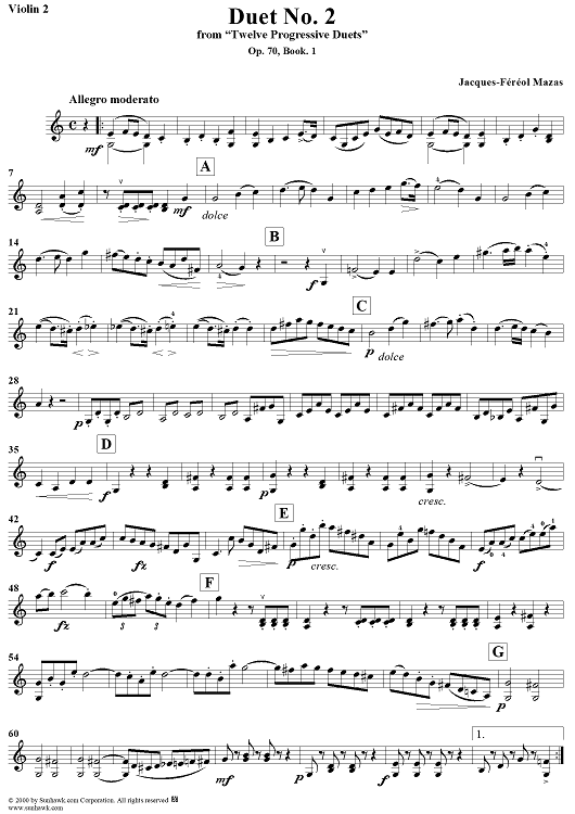 "Duet No. 2 - Violin 2" Sheet Music by Jacques-Féréol Mazas