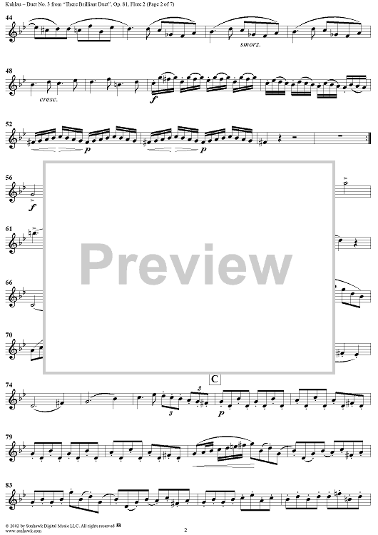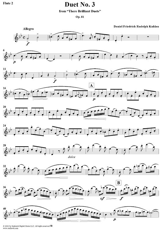 "Duet No. 3 - Flute 2" Sheet Music by Friedrich Kuhlau