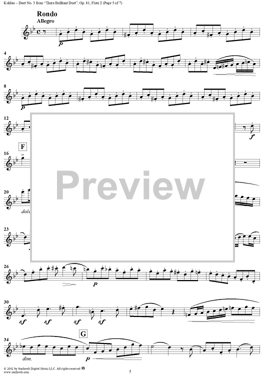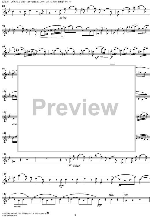 Digital Sheet Music for Duet No. 3 - Flute 2 by Friedrich Kuhlau scored for Two Flutes; id:285219