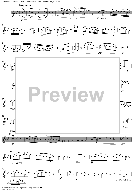 "Duet No. 3, from "12 Instructive Duets" - Violin 1" Sheet Music by Francesco Geminiani