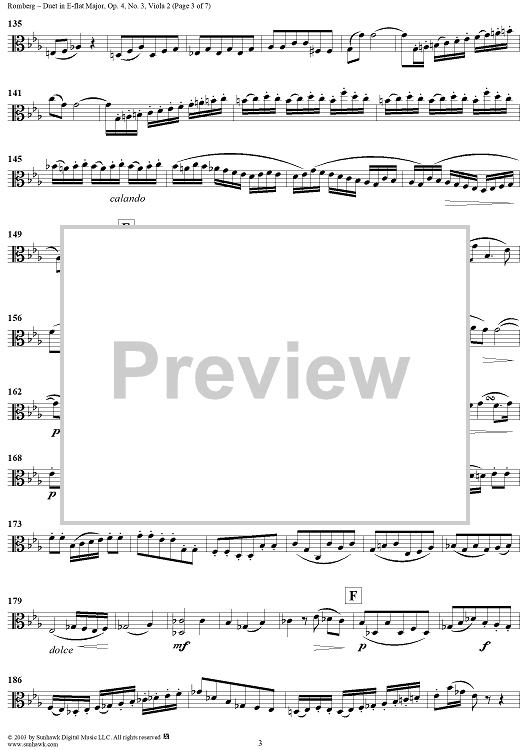 Digital Sheet Music for Duet No. 3 in E-flat Major - Viola 2 by Andreas Romberg scored for Two Violas; id:295152