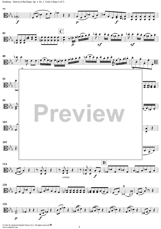 "Duet No. 3 in E-flat Major - Viola 2" Sheet Music by Andreas Romberg