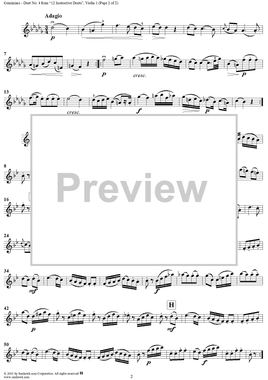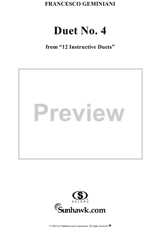 "Duet No. 4, from "12 Instructive Duets" - Violin 1" Sheet Music by Francesco Geminiani