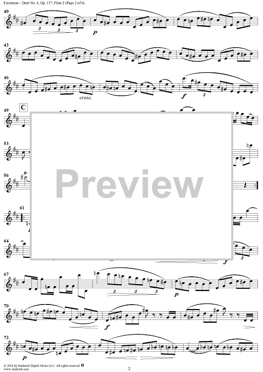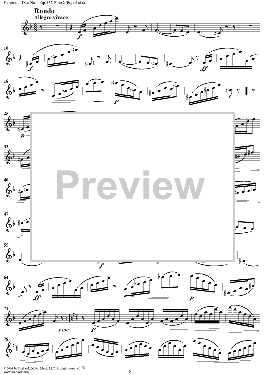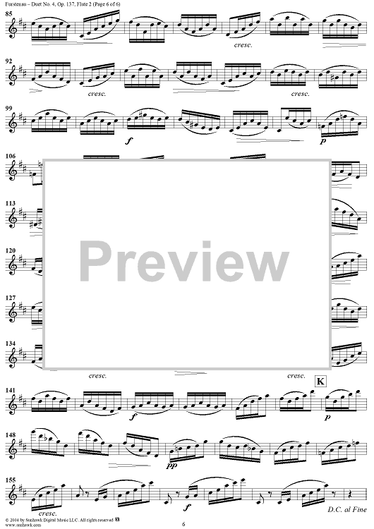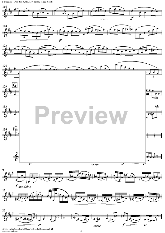 Digital Sheet Music for Duet No. 4 from Six Easy Duets, Op. 137 - Flute 2 by Anton Bernhard Fürstenau scored for Two Flutes; id:303317