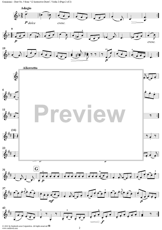 "Duet No. 5, from "12 Instructive Duets" - Violin 2" Sheet Music by Francesco Geminiani