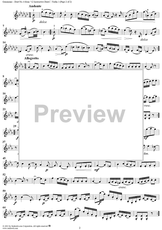 "Duet No. 6, from "12 Instructive Duets" - Violin 1" Sheet Music by Francesco Geminiani