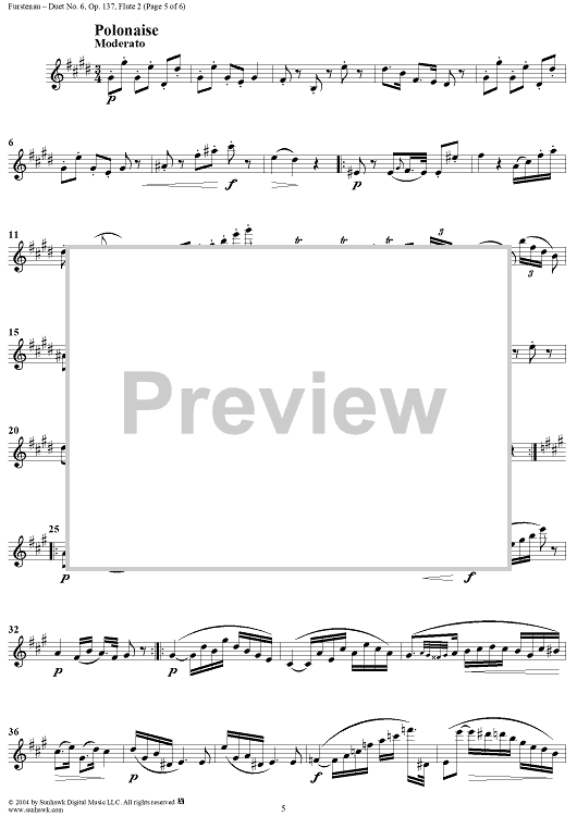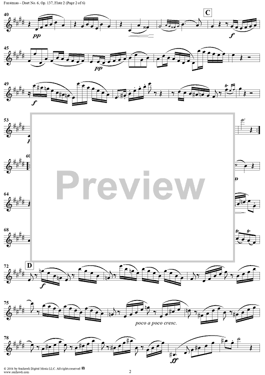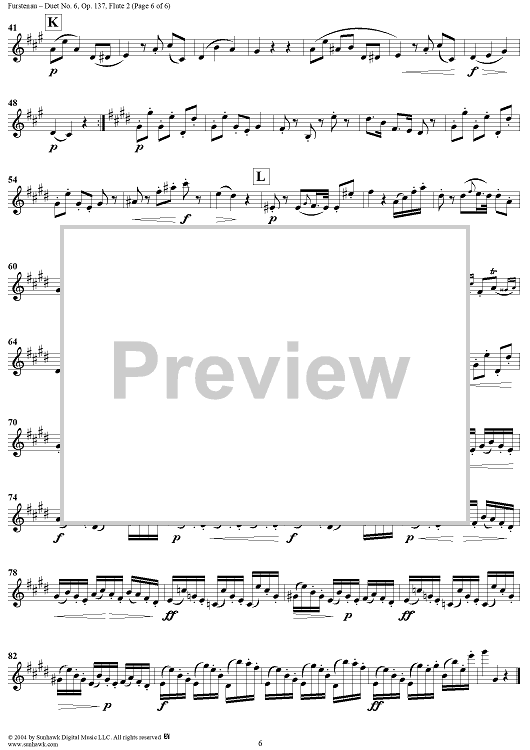 Digital Sheet Music for Duet No. 6 from Six Easy Duets, Op. 137 - Flute 2 by Anton Bernhard Fürstenau scored for Two Flutes; id:303321