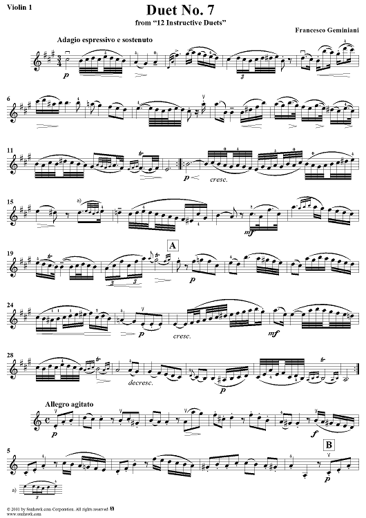 "Duet No. 7, from "12 Instructive Duets" - Violin 1" Sheet Music by Francesco Geminiani