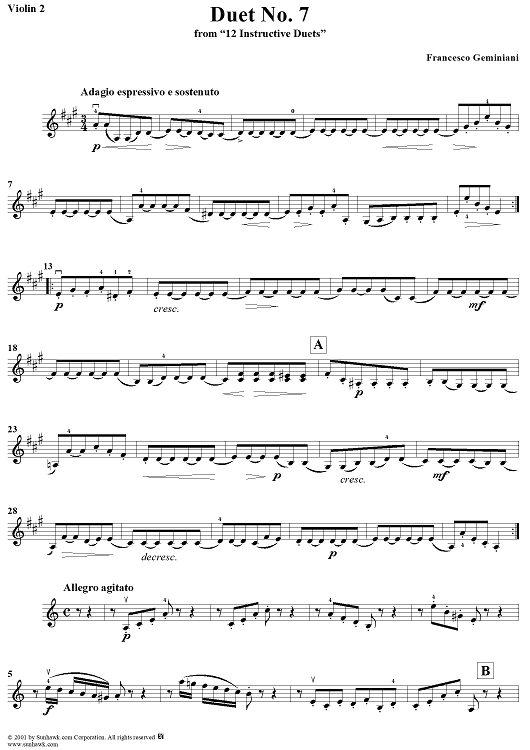 "Duet No. 7, from "12 Instructive Duets" - Violin 2" Sheet Music by Francesco Geminiani