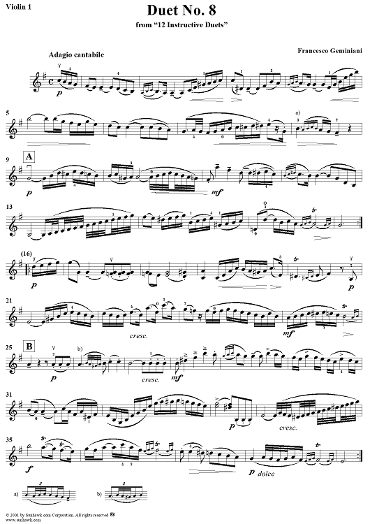 "Duet No. 8, from "12 Instructive Duets" - Violin 1" Sheet Music by Francesco Geminiani