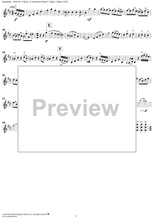 "Duet No. 9, from "12 Instructive Duets" - Violin 1" Sheet Music by Francesco Geminiani