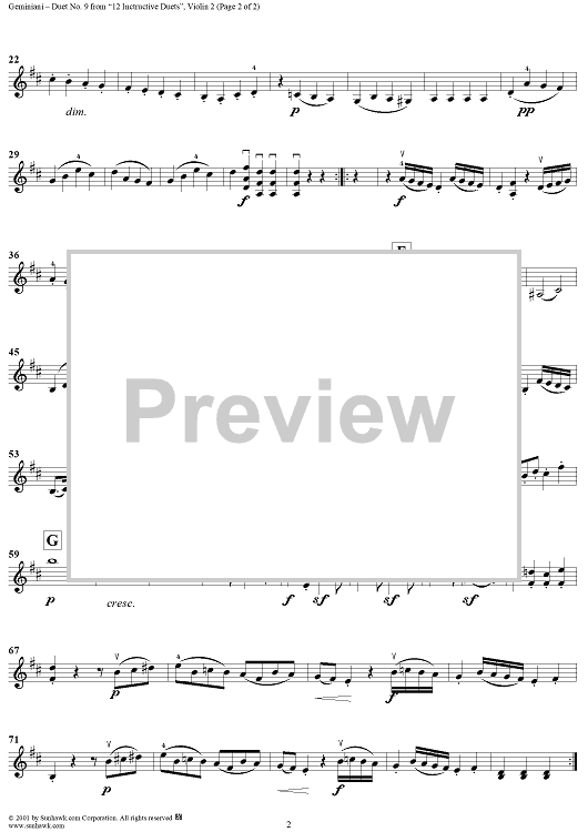 "Duet No. 9, from "12 Instructive Duets" - Violin 2" Sheet Music by Francesco Geminiani