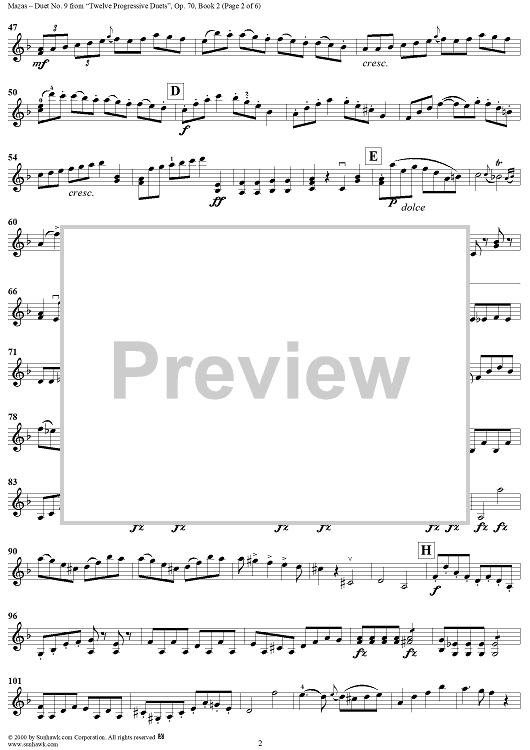 "Duet No. 9 - Violin 2" Sheet Music by Jacques-Féréol Mazas