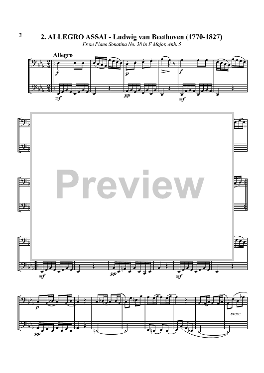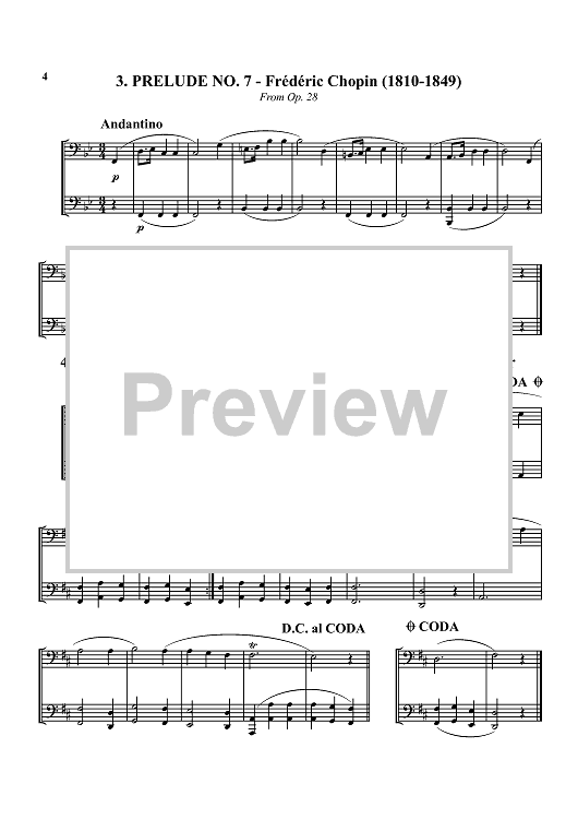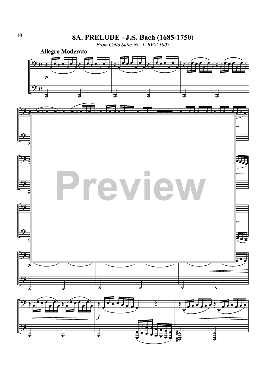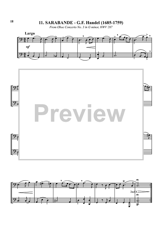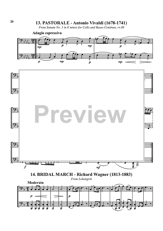 1. Bist du bei mir - Bach 2. Allegro assai - Beethoven 3. Prelude No. 7 - Chopin 4. Drink to Me Only with Thine Eyes - trad. 5. Gavotte - Purcell 6. Honor and Arms - Handel 7. Serenade from String Quartet in F - Hoffstetter 8. Prelude from Cello Suite I - Bach 9. Rondeau - Mouret 10. The Liberty Bell - Sousa 11. Sarabande II - Handel 12. Largo - Vivaldi 13. Pastorale - Vivaldi 14. Bridal March - Wagner 15. Adagio - Handel 16. Andante - Handel 17. In the Hall of the Mountain King - Grieg 18. Für Elise - Beethoven 19 Sarabande - Handel 20. Turkish Rondo - Mozart