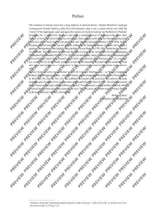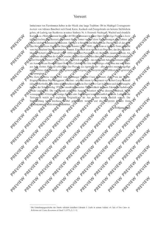 Finally, you can vent your bad mood musically: The Duetto buffo di due gatti (Comic Duet for Two Cats) by Gioachino Rossini provides excellent opportunity to do just that by means of music and mime. In reality, the vocal piece was not written by the Italian opera composer at all, but compiled as a pot-pourri by the English composer Robert Lucas Pearsall (under the pseudonym of 'G. Berthold') who fell back on Rossini's opera 'Otello' as well. But that does no harm to the cheerful dramatic scene with its imitative onomatopoeic sounds. This edition is based on the first edition from 1825, thus containing the 'original text', so to speak, of the humorous 'Cat Duet'. The obvious performers would be two cats, two tomcats or a mixed duet with cat and tomcat. Enjoy - and hiss well!