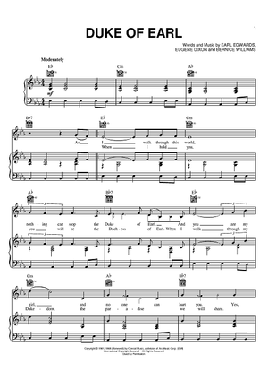 Digital Sheet Music for Duke Of Earl by Gene Chandler, Earl Edwards, Bernice Williams scored for Piano/Vocal/Chords; id:368705