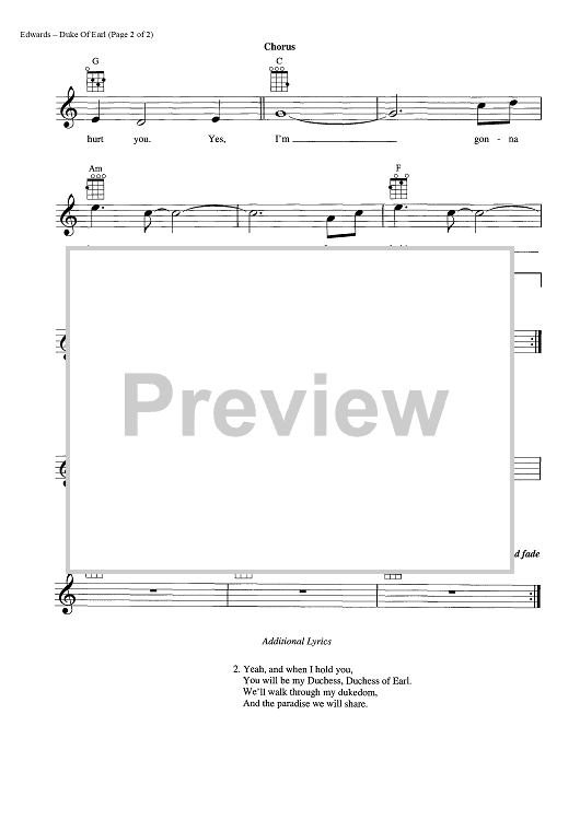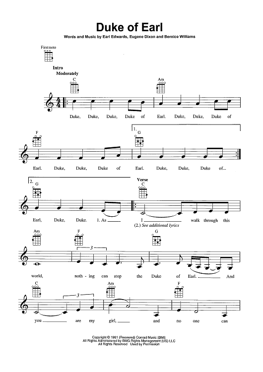 Digital Sheet Music for Duke of Earl by Gene Chandler, Earl Edwards, Bernice Williams scored for Ukulele/Vocal; id:449037