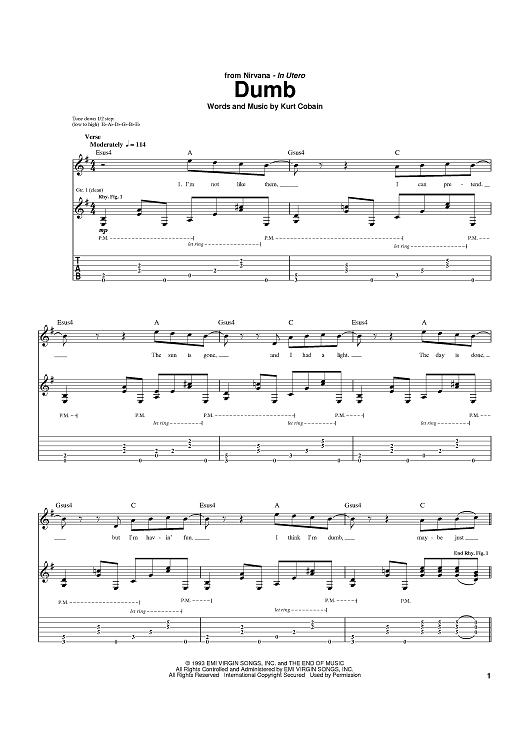 Digital Sheet Music for Dumb by Kurt Cobain, Nirvana scored for Guitar Tab; id:371157