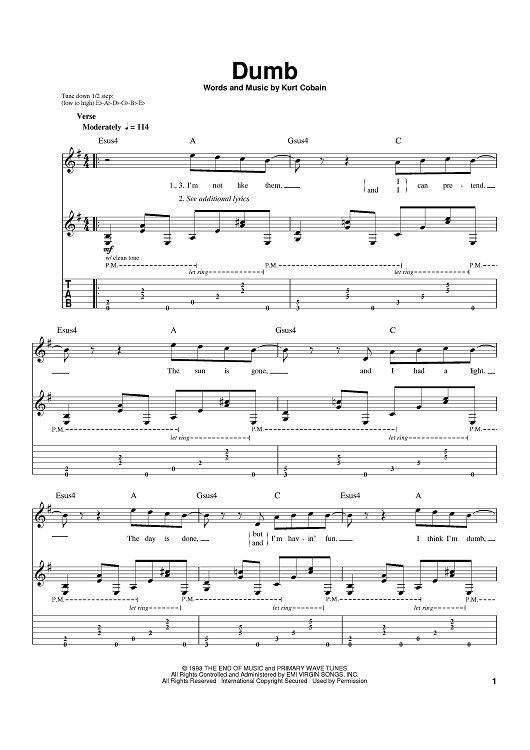 Digital Sheet Music for Dumb by Kurt Cobain, Nirvana scored for Guitar Tab; id:402476