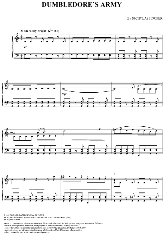 Digital Sheet Music for Dumbledore's Army by Nicholas Hooper scored for Piano Solo; id:363031