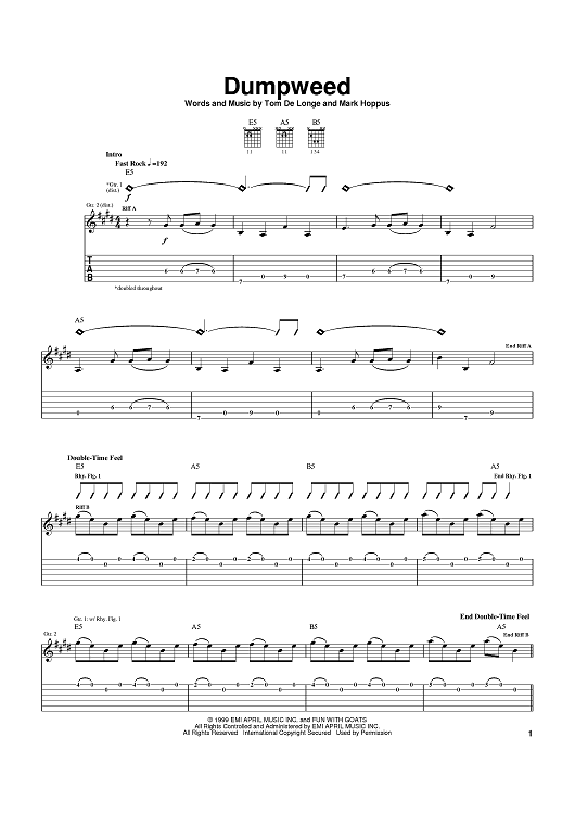 Digital Sheet Music for Dumpweed by Mark Hoppus, blink-182, Tom DeLonge scored for Guitar Tab; id:370590