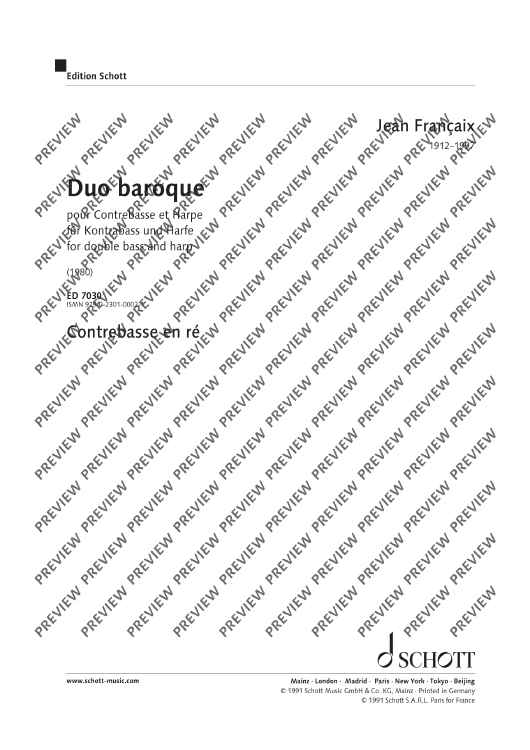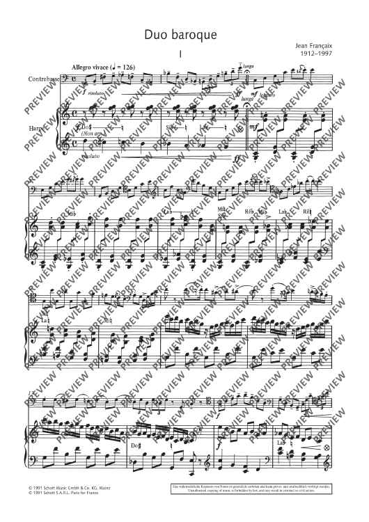 Digital Sheet Music for Duo baroque by Jean Françaix scored for Double Bass And Harp; id:473772