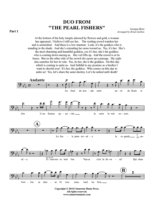Digital Sheet Music for Duo from "Pearl Fishers" - Part 1 by Georges Bizet, Brian Gallion scored for Low Brass Duet; id:426923