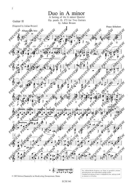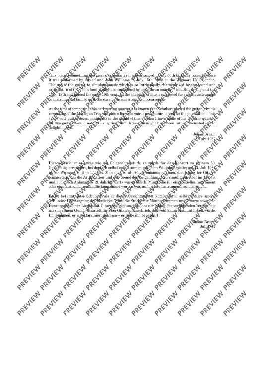 Julian Bream's masterly arrangement of a Schubert quartet for 2 guitars as recorded by Bream and John Williams.