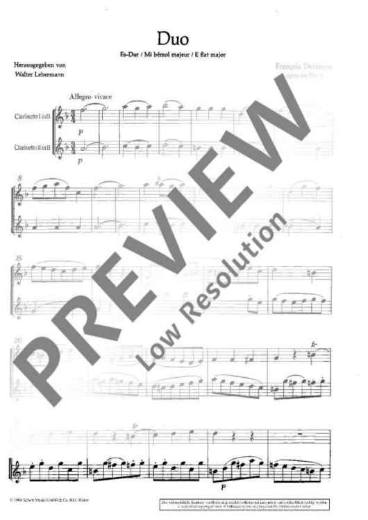 Digital Sheet Music for Duo in E flat major - Performing Score by François Devienne scored for 2 Clarinets; id:475895