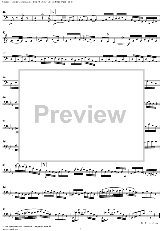 "Duo No. 1 in C Major - Cello" Sheet Music by Carl Stamitz