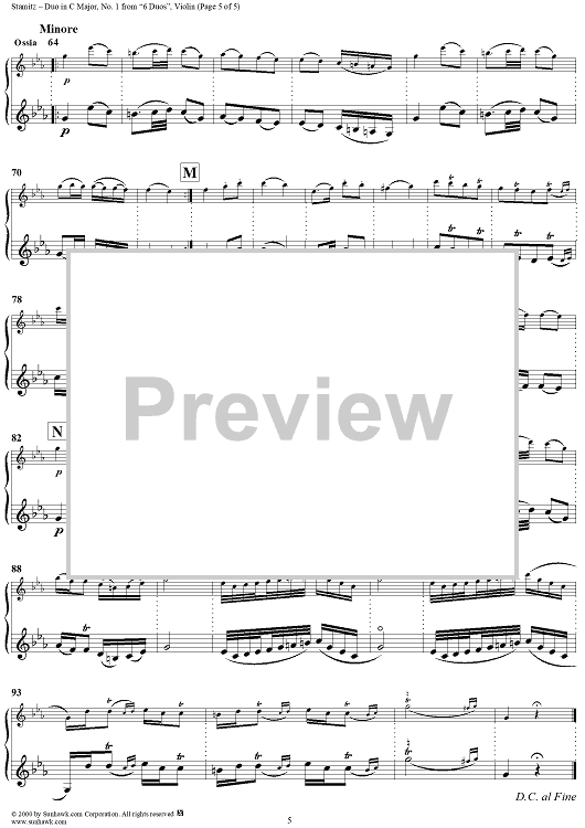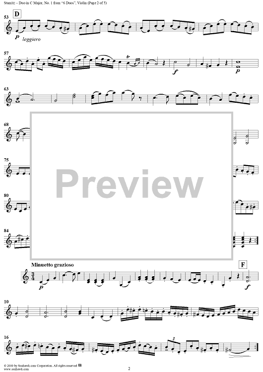 "Duo No. 1 in C Major - Violin" Sheet Music by Carl Stamitz