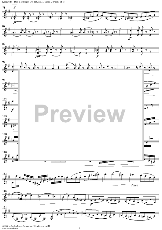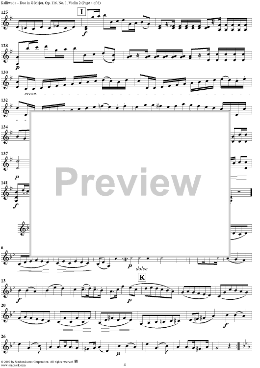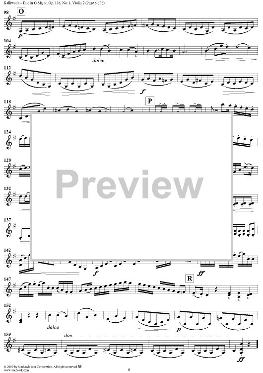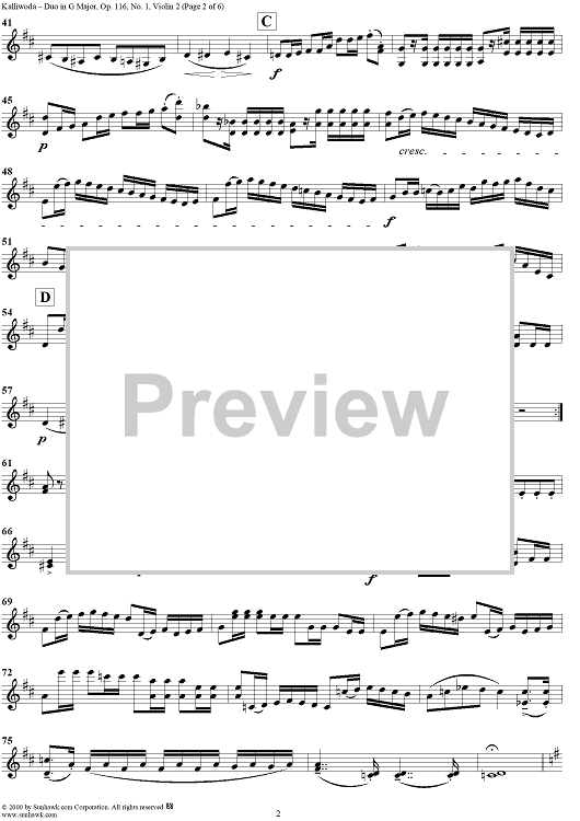"Duo No. 1 in G Major - Violin 2" Sheet Music by Johann Wenzel Kalliwoda