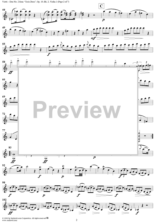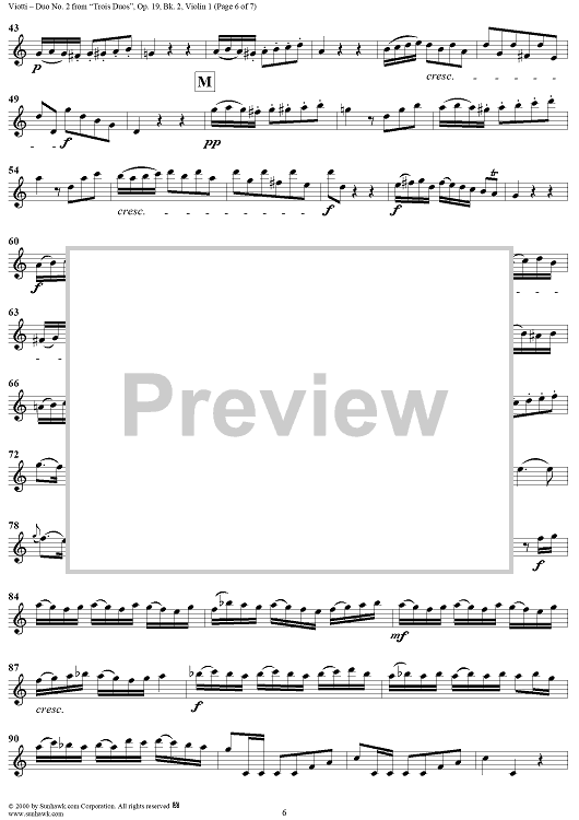 Digital Sheet Music for Duo No. 2 from "Trois Duos", Op. 19, Bk. 2, No. 2 - Violin 1 by Giovanni Battista Viotti scored for Two Violins; id:265003