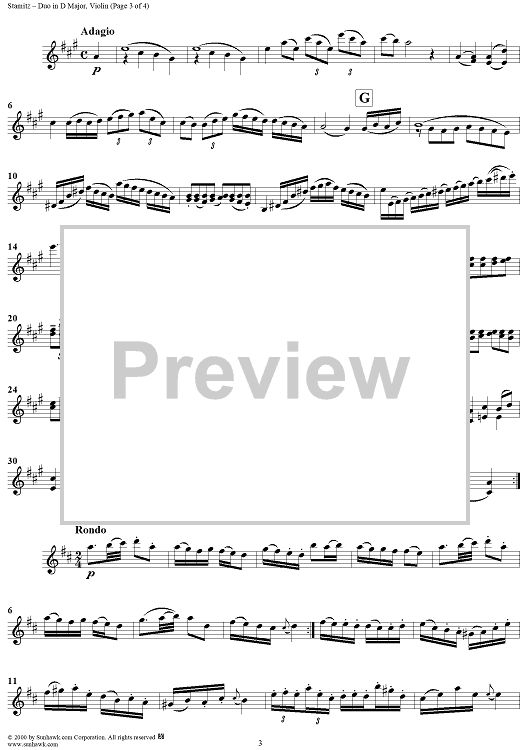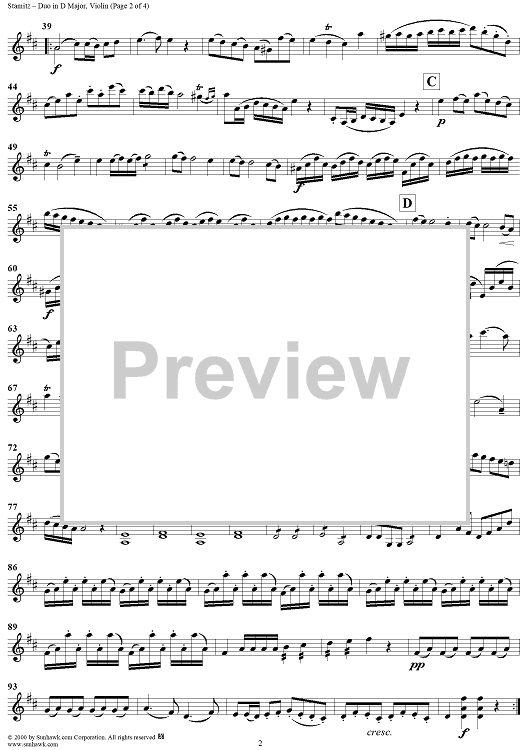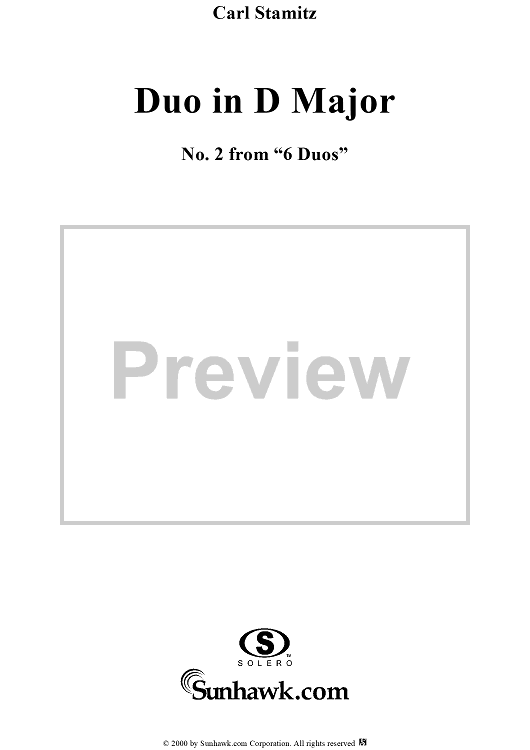 "Duo No. 2 in D Major - Violin" Sheet Music by Carl Stamitz