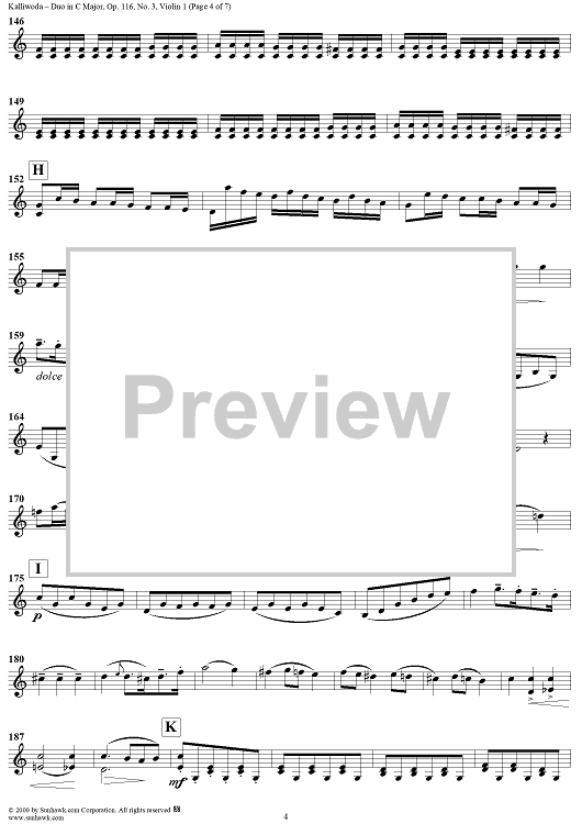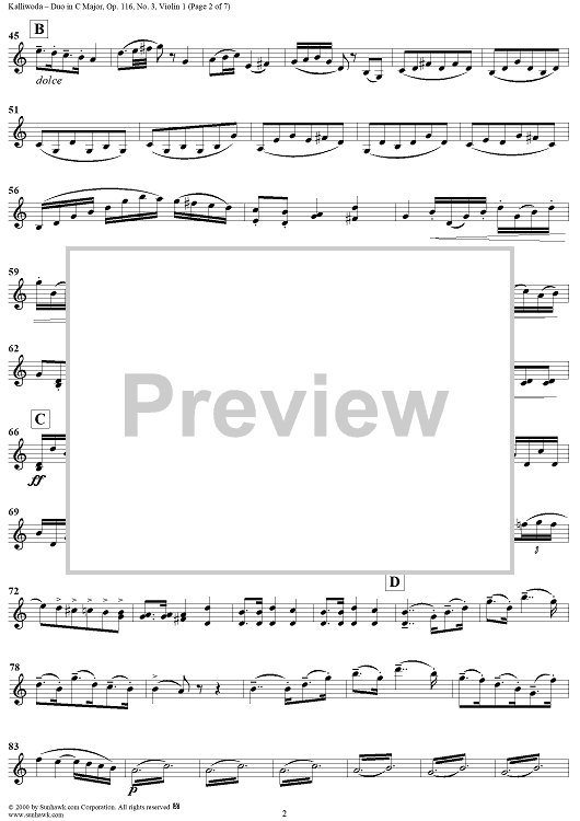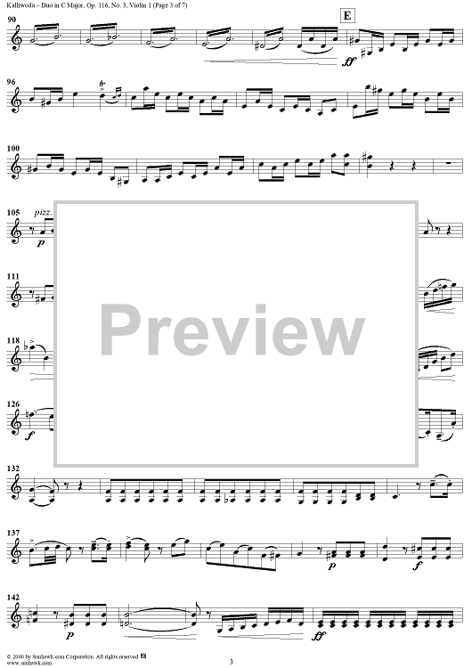 "Duo No. 3 in C Major - Violin 1" Sheet Music by Johann Wenzel Kalliwoda
