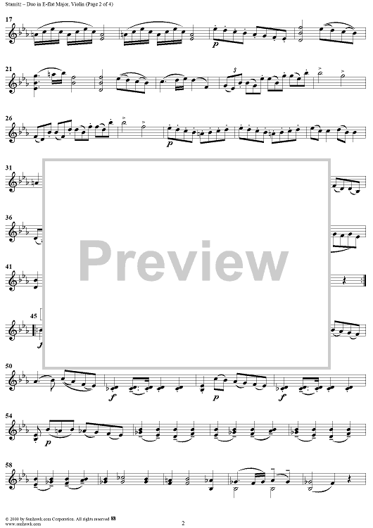 "Duo No. 3 in E-flat Major - Violin" Sheet Music by Carl Stamitz