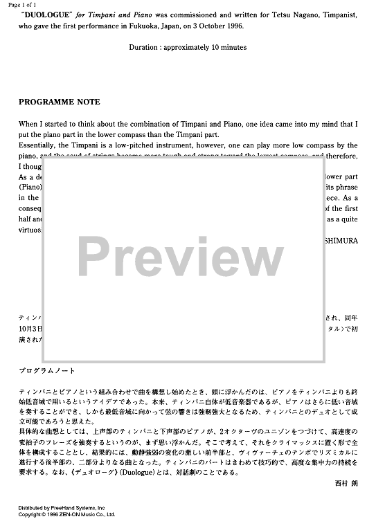 Digital Sheet Music for Duologue - Preface by , Akira Nishimura scored for Preface; id:337899