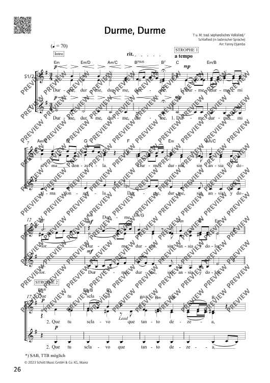 Digital Sheet Music for Durme, Durme by Fanny Djamba scored for School Choir, Mixed Choir (vv/ssa); id:500573
